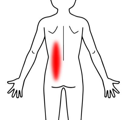 お正月明けのお客様の腰や背中は、パンパンに張っていることが多いです。特にイラストの赤くなっている辺りですね。