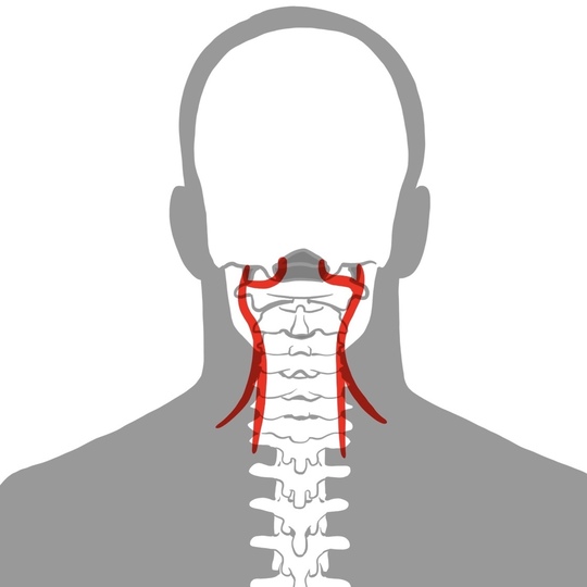首における血管の構造として特に重要なのが、頭に近い部分で、この部分は上部頸椎(じょうぶけいつい)と呼ばれています。