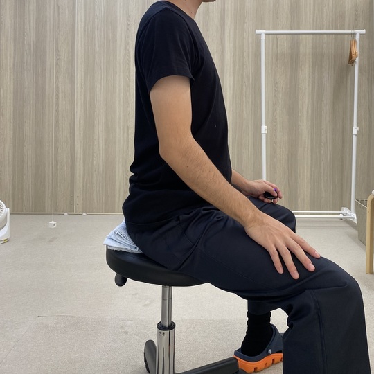 このときのアドバイスとしては、タオルをお尻の真下に置くのではなく、後ろから差し込んで、骨盤が後ろに倒れないようすることが大切です。