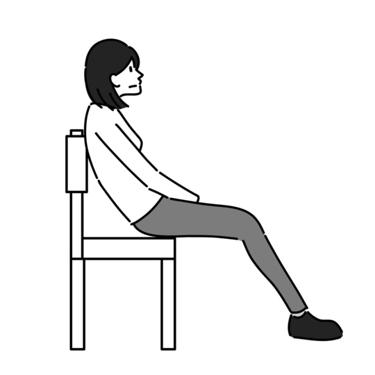 イラストのように、椅子に浅く座り、背もたれにもたれると、腰が丸くなってしまい、骨盤が安定しません。